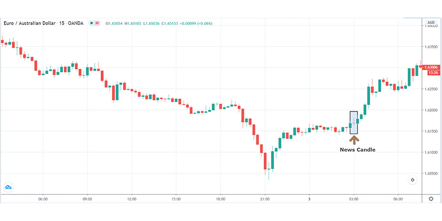 پس از انتشار خبر، قیمت جهت مشخصی را در پیش نگرفت و تقریباً ثابت باقی ماند. PMI تأثیر خنثایی بر این جفتارز داشت؛ بهطوریکه کندل خبر یک الگوی دوجی را تشکیل داد. چند دقیقه پس از خبر، به دلیل امیدواری به وضعیت اقتصادی، قیمت یورو (نسبت به دلار استرالیا) اندکی افزایش یافت و روند نزولی تقریباً متوقف شد.